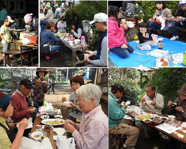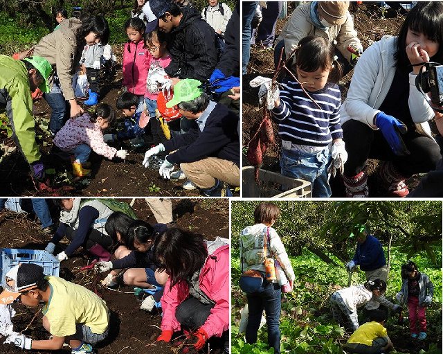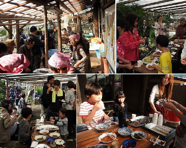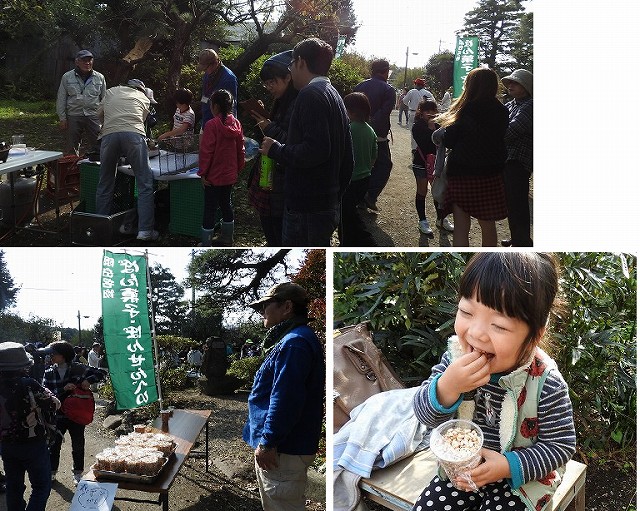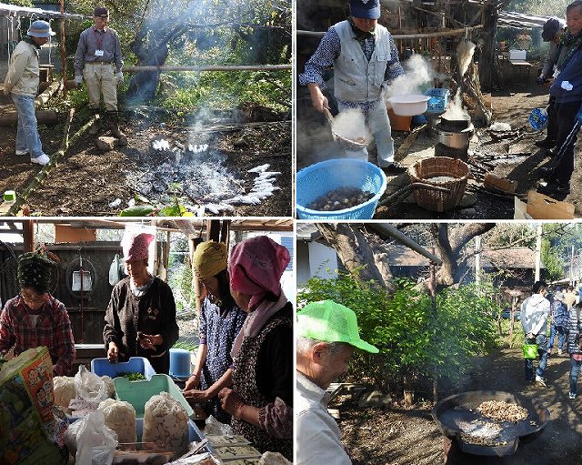 好天に恵まれた1日、恒例の雨岳文庫の収穫祭が開かれました。まずはみんなでサツマイモ掘りをしました。そのあとスタッフが用意した盛りだくさんのおやつ(焼き芋、ひょっくり芋、落花生、ギンナン、芋蔓の煮物、芋羊羹、こんにゃく、生姜のつくだ煮、など)を頂き、トン汁で昼食にしました。