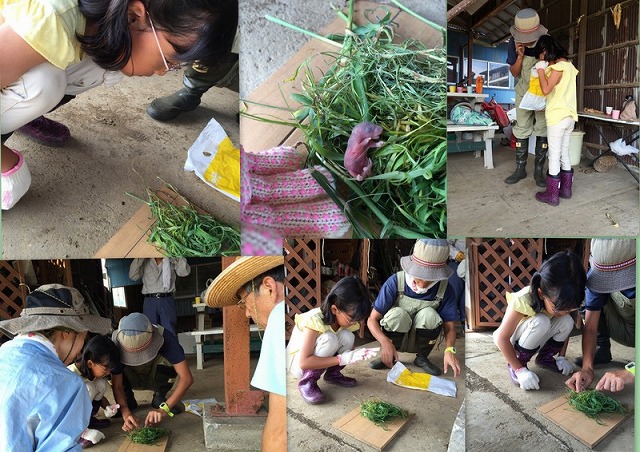 *「茎返し」とは、畝よりはみ出した茎から芋を作ろうとする根っこを抜いて、畝の上に葉を戻すこと。これにより葉の光合成を活用して本来の根を大きくします。