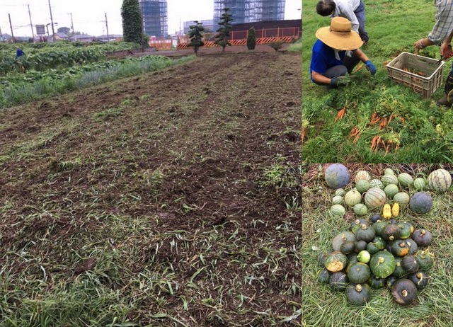 作業後のすっかりきれいになった畑と、本日の収穫物のかぼちゃと人参です。