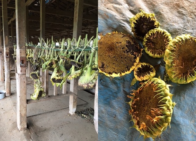 ひまわりは乾燥させてタネを採ります。『ど根性ひまわり』も8代目のタネが採れます。