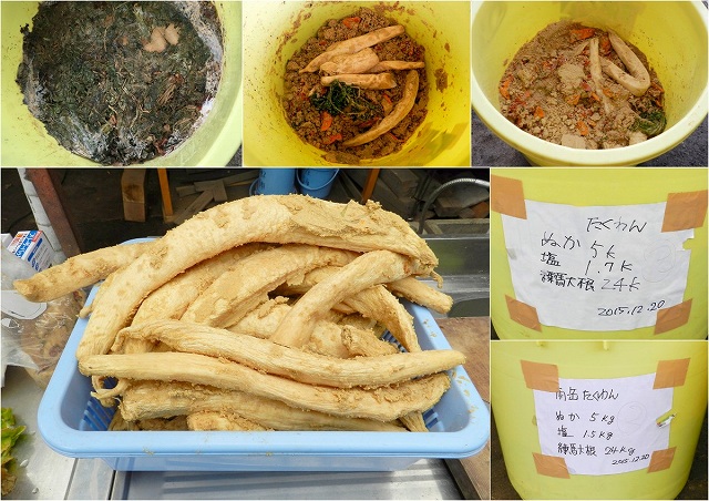 今回の樽は大根の品種「練馬大根」24Kg、糠5Kg、塩1.7Kgの樽と、大根と糠の量は同じで、塩1.5Kgの樽です。