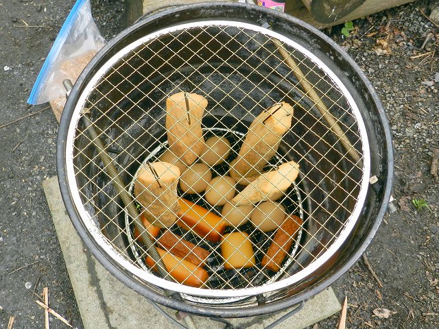 ランチタイムにはお酢の物、ザー菜等の手作り品の他、沢庵、チーズ、卵、ちくわ、かまぼこなどを燻製にしたものをご試食いただきました。