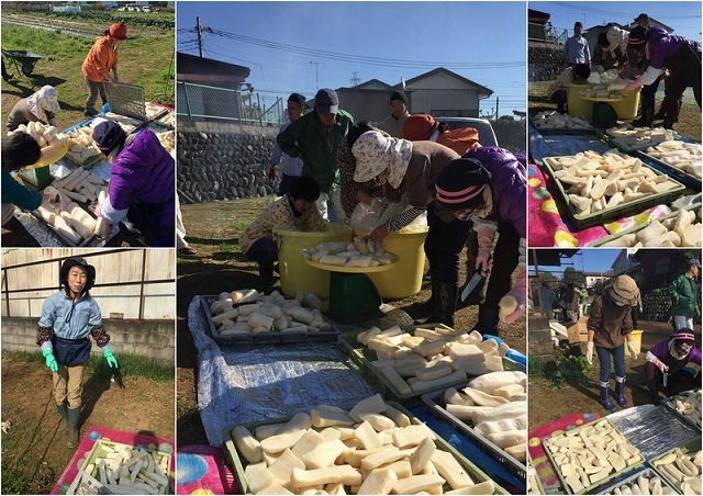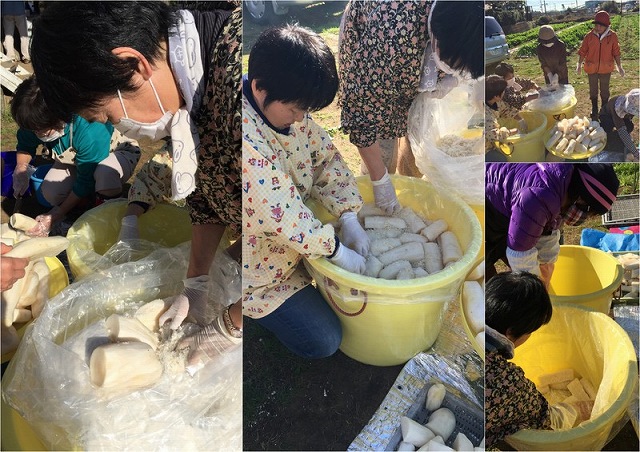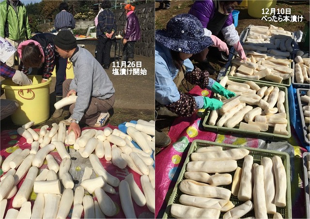 雨岳自然の会漬物班では、11月26日に「大くら大根」135Kg(45Kg樽??3つ)を3%の塩で下漬けしておきました。