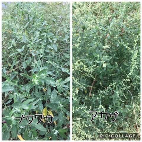 ひまわり畑に背の高さ以上の草、ブタクサとアカザがはびこっています。タネをつける前に刈り取らないと来年は恐ろしいことになります。千日紅も赤い花元気に咲いてます。ドライフラワーにしましょうか。