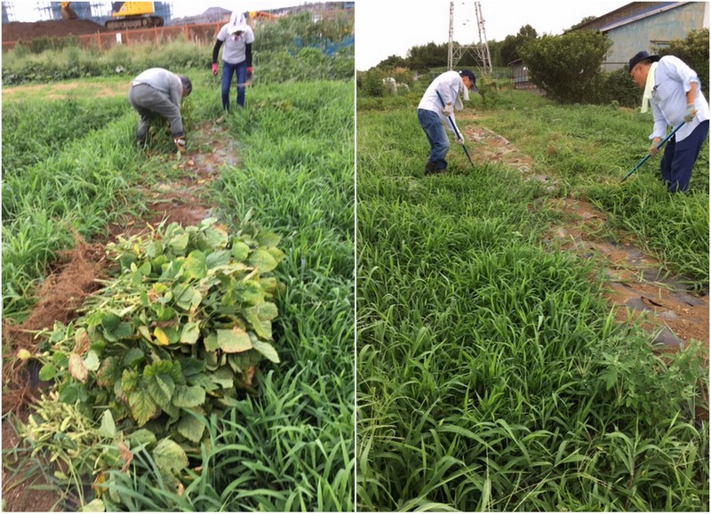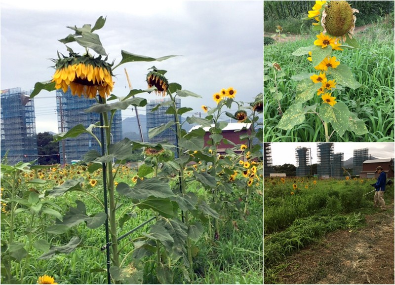 ひまわり畑を草刈機で、綺麗にしました。「ど根性ひまわり」もすくすくと育っています。タネ採りをして「東日本大震災の津波に負けずに咲いた花=ど根性ひまわり8世」を伊勢原住民にもお分けし、自然災害について話すきっかけ作りにお役に立ちたいです。