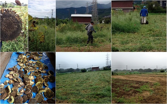 草やひまわり(タネ取り後)を刈り取ることができました。