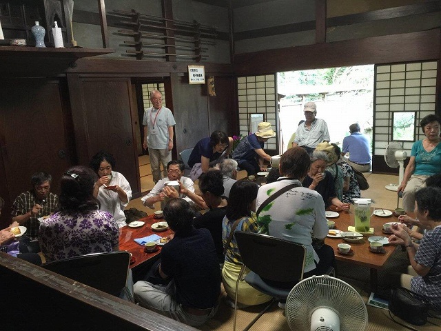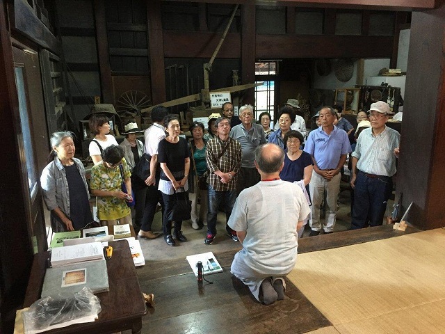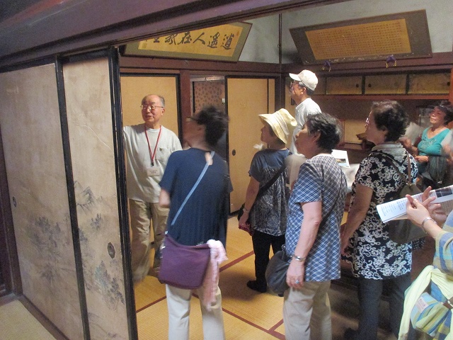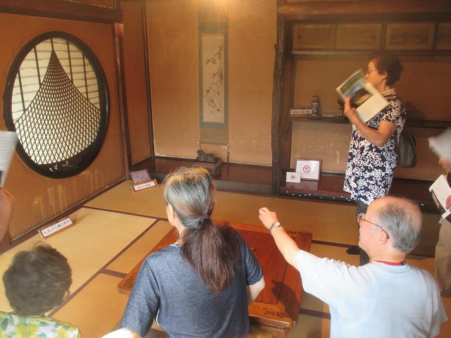 大山や秦野を回る途中で雨岳文庫に24名の方がみえました。雨岳ガイドの会の2人が対応し山口家の中を案内しました。