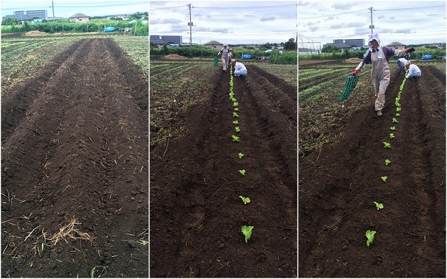 レタスの苗を株間30cmで、移植しました。