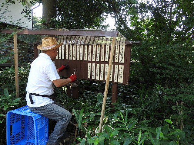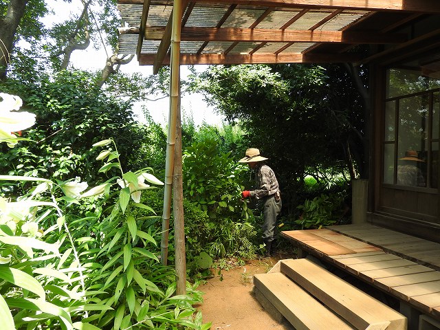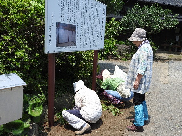 暑い日差しの中、みんなで夏草取りをしました。資料館前の俳句掲示板の掲示も新しくしました。雨岳文庫は、7月、8月は一応夏休みですが、今度の土曜日には厚木の日中友好協会の皆さんを迎える予定です。