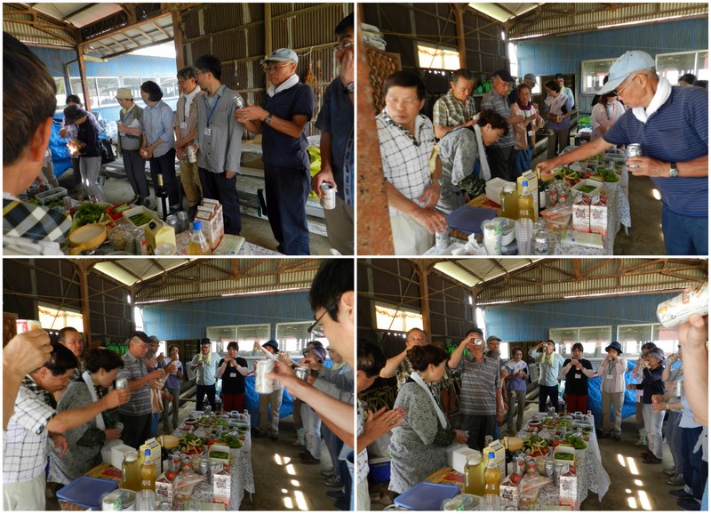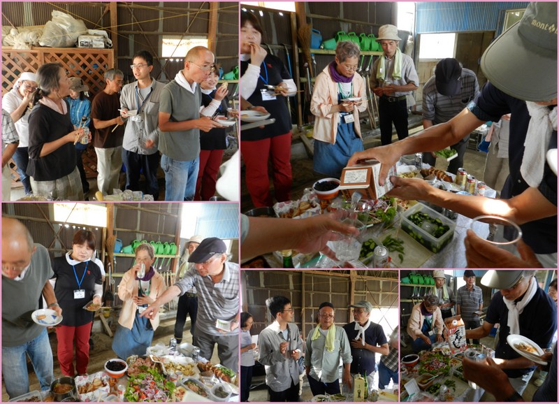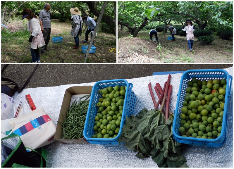 明治期の治水場の写真や、江戸時代の浮世絵等から、森林の状況推移のお話等受講生はぐんぐん引き込まれていました。 西富岡の畑では、講座終了の受講生と一緒に過ごす「ポットラック」の準備に自然の会会員の皆さんが、奔走します。 自然の会恒例の「ポットラック(一品持ち寄り)パーティー」が始まります。 もちろん、アルコール飲料もたっぷりご寄付いただき有意義な時間を楽しみました。 それぞれ、いろいろな経験をお持ちの方々の集まりですので、お話が弾みます。 又、毎回智子様・恵子様に雨岳文庫さんの自生の食材で作っていただいた「雨岳ランチ」に感謝をこめて、みんなの手料理を詰め合わせて召し上がっていただきました。 雨岳文庫さんの梅がまだまだたくさんなっていました。自然の会会員で落ち梅と一緒にいただいてきました。 受講生へのお土産です。今年はジャガイモ、玉ねぎも良い出来でたくさんお持ち帰りいただけました。 西富岡の畑から見える景観は、第2東名の建設で、随分と変わってきています。 これからも、ますます貴重な「伊勢原の緑の景観」を力と知恵を合わせて創作して行きたいものです。 参加者:受講生9名、 自然の会会員 18名 ご招待 3名 合計30名
