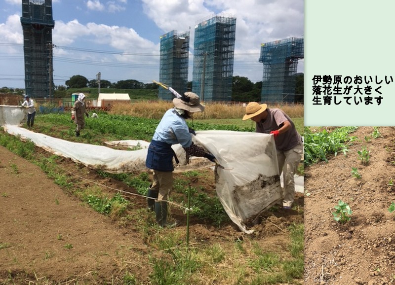 落花生の不織布(野鳥やハクビシンに食べられないように使いました)を取り除き除草や欠落部分に蒔き直しをしました。