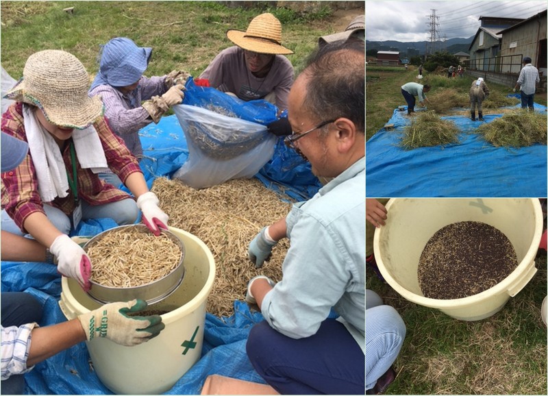 枯れた菜の花を刈り取り、種取りをしました。脱粒作業等すべてみんなで手仕事で楽しみました。
