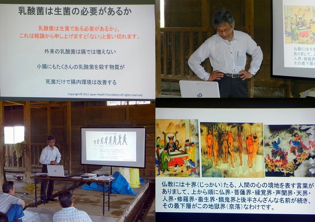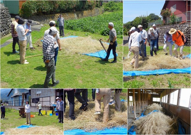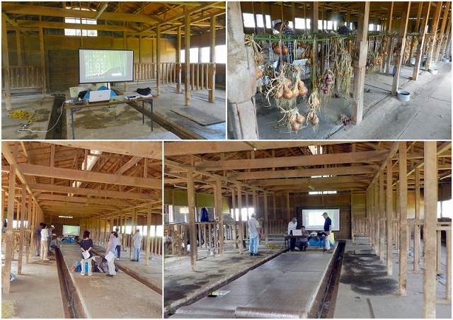 今日の午前中の座学は西富岡の旧牛舎内で行われました。パソコン用の電源は延長コードを利用して、お近く
