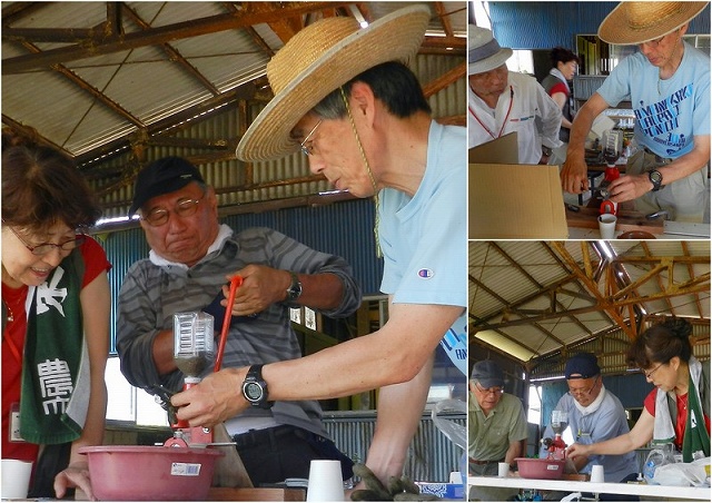 本日のテースティング用の菜種油を採取するだけでも、大変な労力を必要とします。