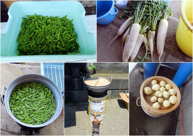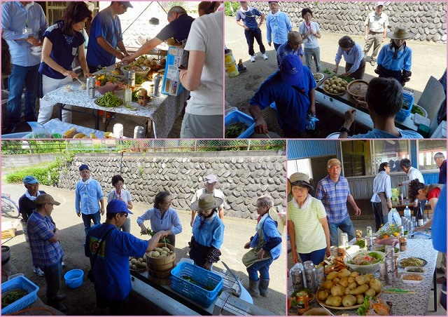 サポーター’sは今日のパーティ用の収穫やパーティ会場の設定、ジャガイモ料理や大根サラダの作成に大忙し。