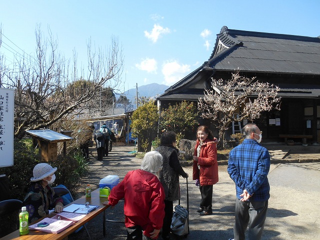 3日目は雨模様でしたが、4日目より良い天気になり梅林の散策と山口家古民家の見学にお客様がおいででした。出店も出ています。