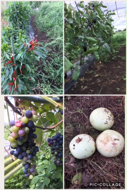 ・小澤さんにお世話になりながらの皆んなのナス畑です。どんどんなっていますので 来た方は収穫して行って下さい。・オープンカレッジ開始の頃のブドウ「コンコード」?が実って作業の汗を潤してくれます。感謝です。・会員の畑には いろんな物ができます。大きな夕顔の実ができました。かんぴょう作りしましょう!参加者14名でした。次回は 8月25日作業です。以上。 続きを隠す<<