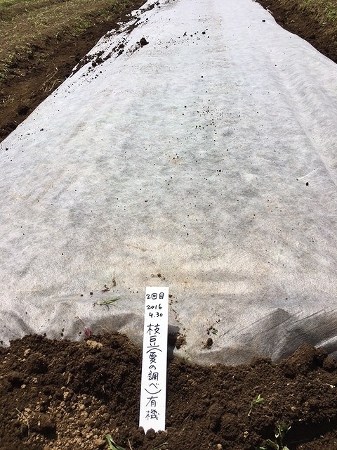 枝豆の収穫日をずらすために、2回目の播種をしました。“夏の調べ”です。