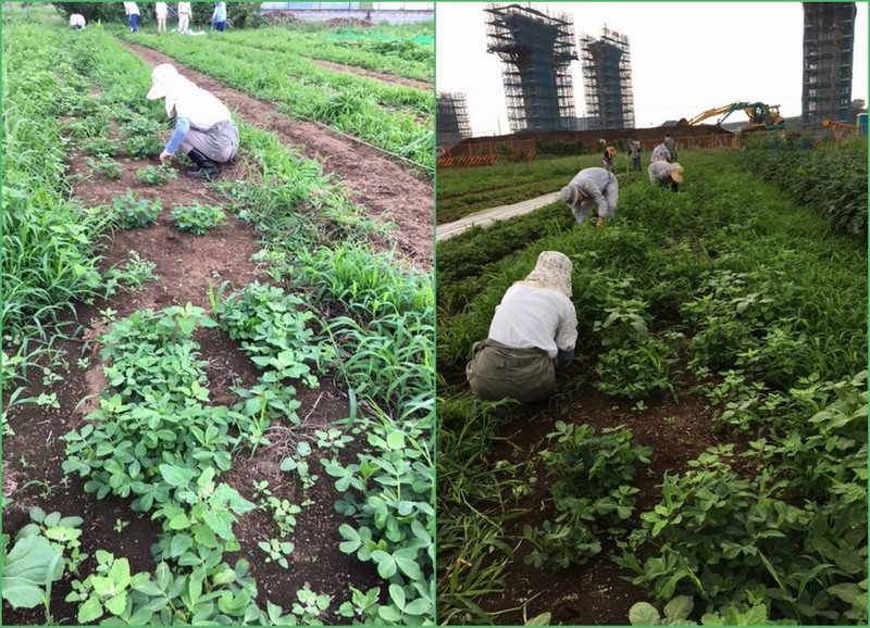 今の時期は雑草が凄い勢いで繁茂。昨年も大好評だったら落花生の周りから除草しました。