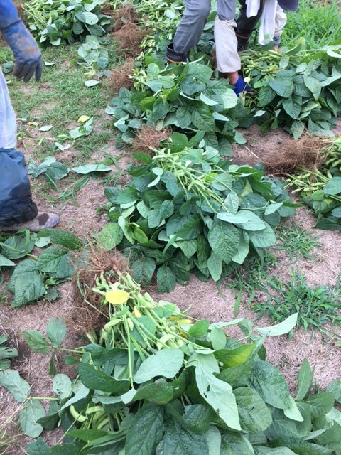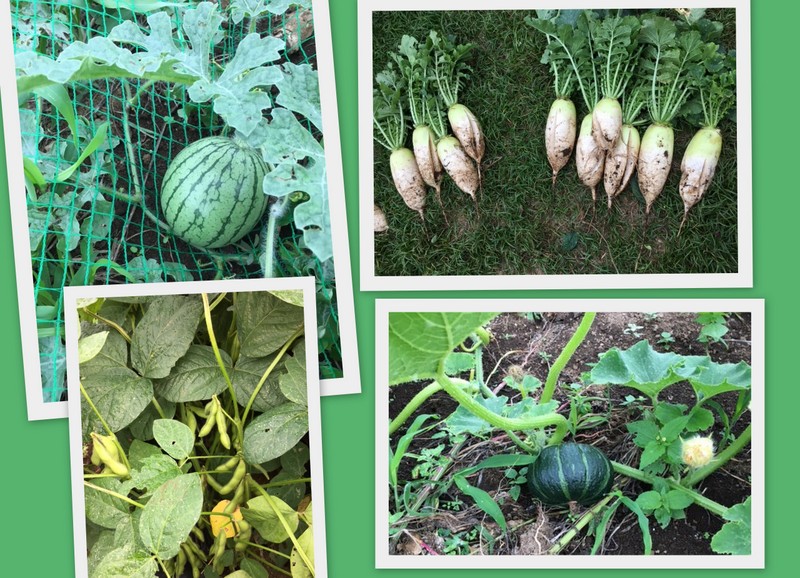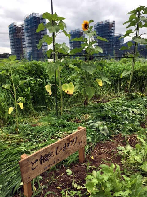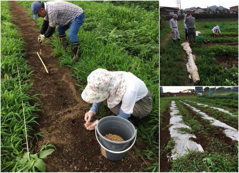 この季節、毎週自然の会の有志のみんなの野良作業に、畑の野菜たちも答えてくれています。 作業は、ほぼ午前中の10時から12時の間です。広い畑で植物の成長を見ながら汗を流す楽しい(?)畑仕事に、ぜひお出かけください。 神奈川県の在来品種「津久井大豆」を3列蒔きました。 カラスやハクビシンに食べられると全滅になりますので、不織布を掛けました。 ビールのつまみに最適な枝豆、収穫。今夜のビールは格別です。 先の伊勢原環境展でいただいた「ど根性ひまわり」です。こんなに大きくなりました!。 「雑草にまけないように頑張れ!スクスクと。」雨岳自然の会のみんなで見守っています。 西富岡の畑で咲いたひまわりからも種子が採れそうです。 次の世代、またその次の世代に、「ど根性ひまわり」からのメッセージを届けます。 参加者11名