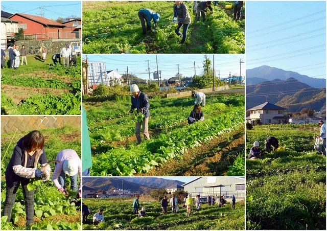 伊勢原農場見学の後、いつもの西富岡の畑にもどり、葉菜類の収穫をしました。