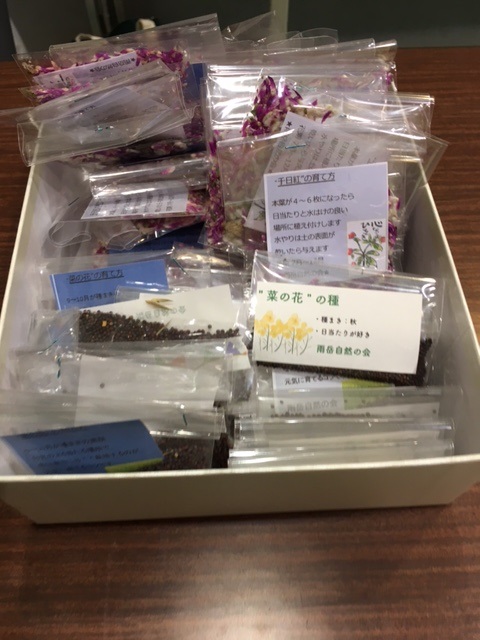 花いっぱいの伊勢原になるよう、雨岳自然の会の「西富岡の畑」で採れた「千日紅」と「菜の花」の種をプレゼントしました。