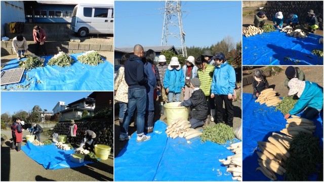 平成29年12月23日、30人を超える自然の会会員が、大山の麓に集合し、手作りべったら漬けと昔ながらの沢庵漬け作りの作業を行いました。
