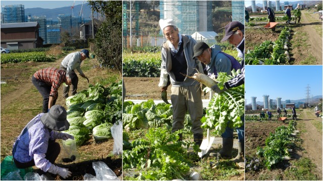 今日の皆様へのお土産は立派に出来た白菜と大根です。