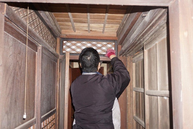 (1) 新たに入れた障子が特に問題ない場合は、蝋で敷居(上下)の滑りを良くして作業終了となります。