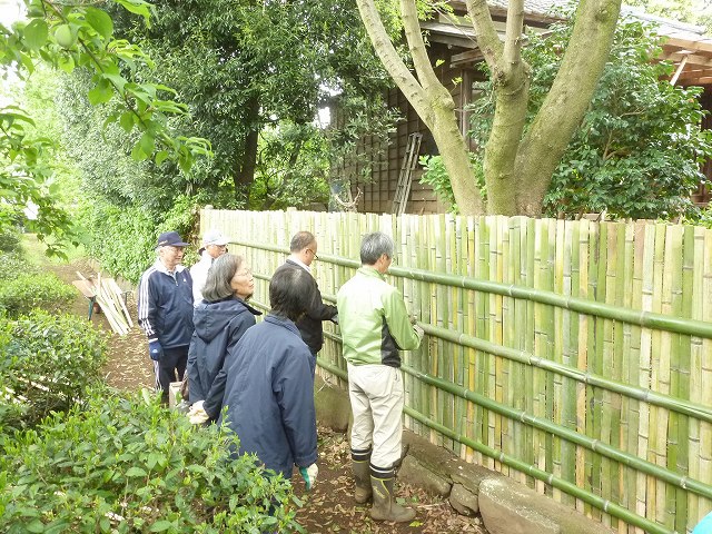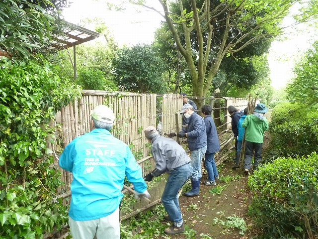 古い竹垣をみんなで壊します。