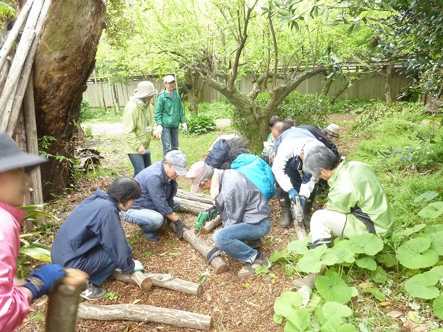そのあとシイタケのホダ木に菌を打ち込みました
