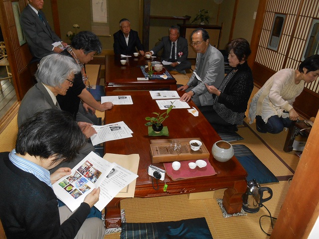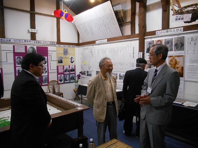 資料館では自由民権の資料「山口左七郎と湘南社」の展示があり、離れではお茶のおもてなしがありました。