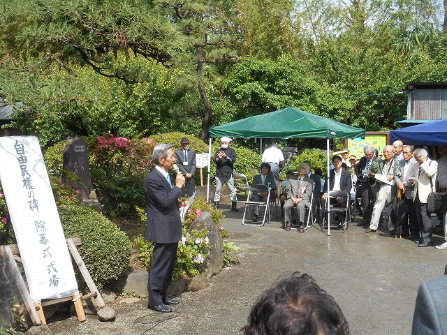 6月5日雨の中100名以上の方に参集いただき「自由民権の碑」除幕式と記念講演会が開かれました。