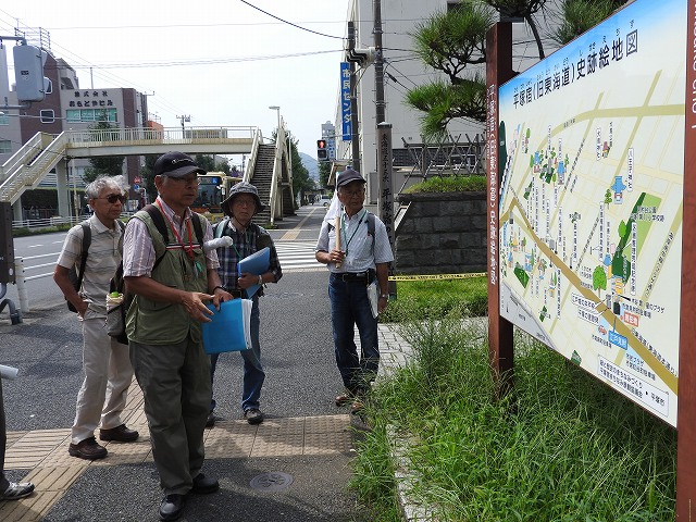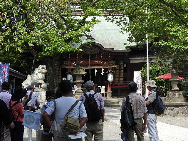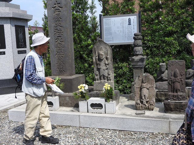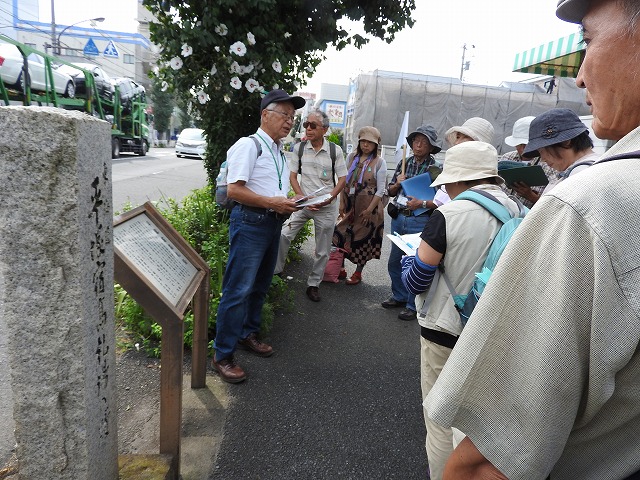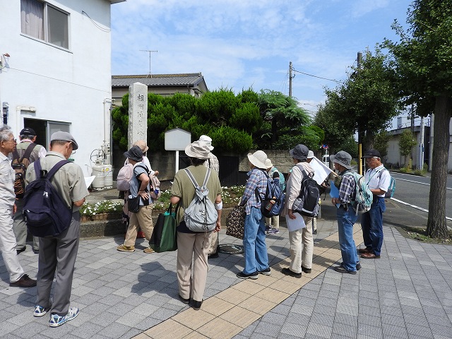 雨が心配でしたが予報が外れて良い天気で暑くなりましたが、伊勢原とその周辺を歩くの6回目”海からの大山道「須賀と平塚宿」を、参加者24名、スタッフ16名の40名で3班に分かれて行いました。