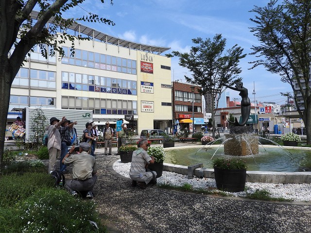 平塚駅前の人魚の像「海の参加」澤田政広作;平塚駅北口にあったが南口に移された