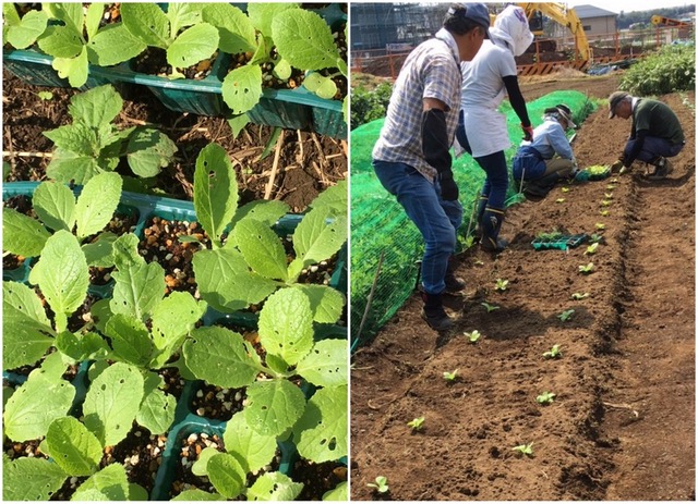 白菜の苗を植え替えました。品種は『黄ごころ』です。冬の鍋ものにもってこいです。苗は小沢さんが作ってくださってます。