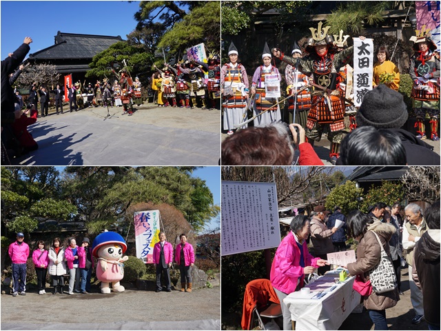 今年も雨岳文庫で伊勢原市長ほかの来賓を迎えて春色フェスタのオープニングセレモニーが行われました。甲冑隊の出陣式や、クルリンも登場しました。午後は、五條詠寿郎ショーとこども科学館のシャボン玉がありました。各所にフリーマーケットブースや食べ物の出店が出て盛況でした。