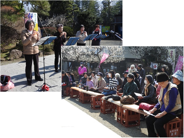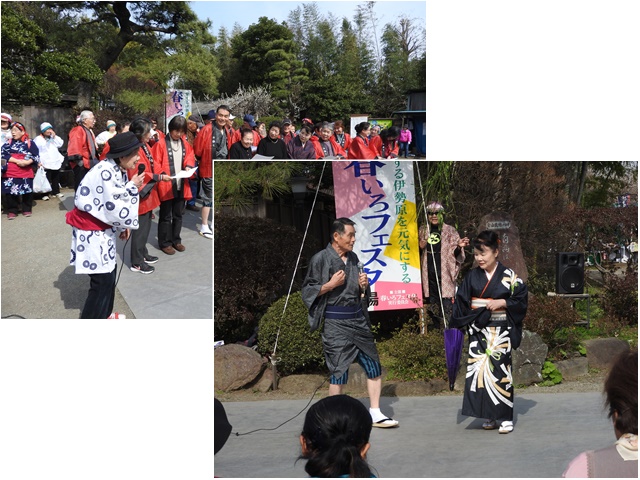 今日も晴天に恵まれ盛りだくさんの催し物に、沢山のお客様がみえました。まずオカリナの演奏で幕を開け、若い元気ないせはら舞呼の踊り、午後はフラダンスにキスゲハイキングクラブの出し物、最後に凡天の歌で春色フェスタを終えました。雨岳自然の会のポン菓子やフリーマーケットなどもありました。