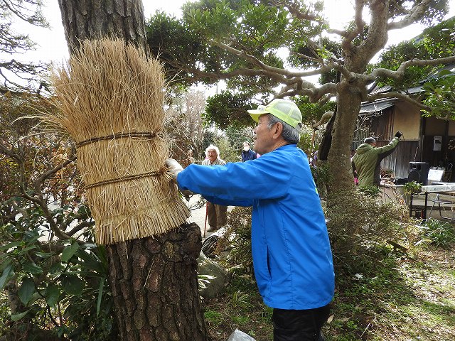 今日は啓蟄なので最後に松の木にまいた菰を外しました。