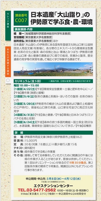 22日土曜日 東京農大のオープンカレッジ講座がスタートしました。今期は【日本遺産「大山詣り」の伊勢原で学ぶ食・農・環境】がテーマです