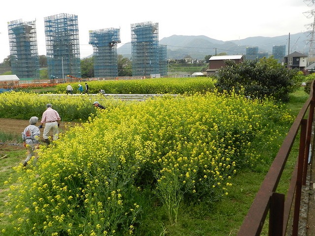 午後は、西富岡の畑へ移動します。満開の菜の花です。