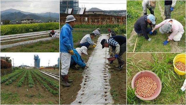 自然の会の会員の皆さんは、昨年大好評だった落花生を植えました。じゃがいもの周りの草取りも。