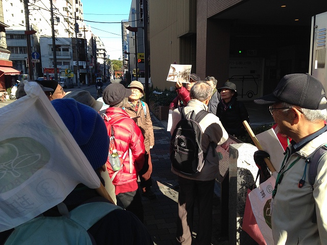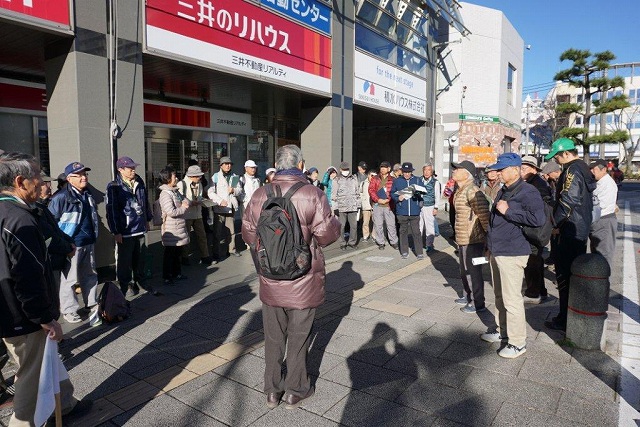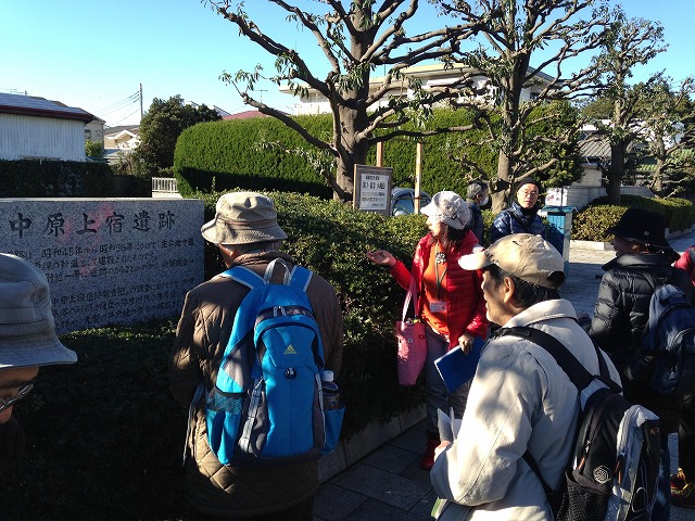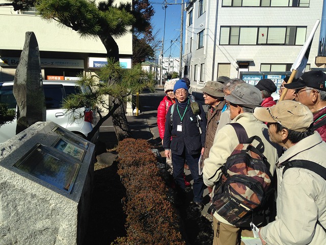 好天に恵まれた中、伊勢原とその周辺を歩くの7回目がありました。今回は明治・大正の大山道「平塚道」で平塚駅から追分を通って中原まで、雨岳ガイドの会の皆さんの説明を聞きながら歩きました(参加者38名、スタッフ17名)。