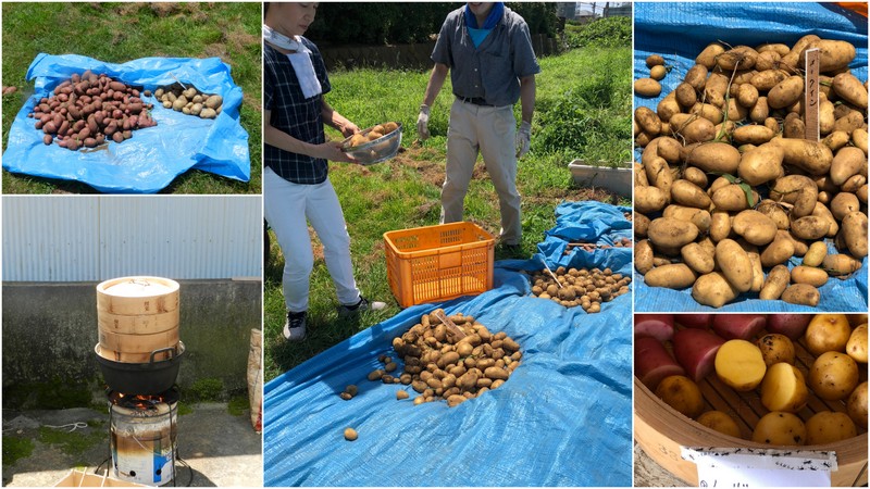 ジャガイモの収穫です。北海道から取り寄せた、まだ珍しい品種(スノーマーチ)もあります。