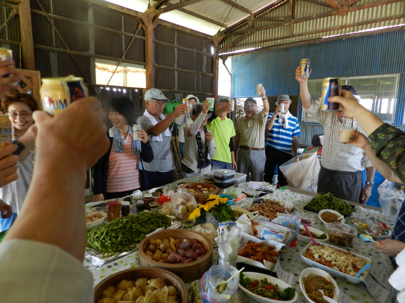 この好機を逃さず、冷えたビールと採れたての枝豆で、雨岳自然の会の収穫祭を西富丘の畑で開催しました。