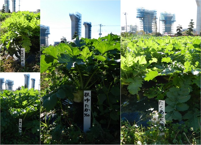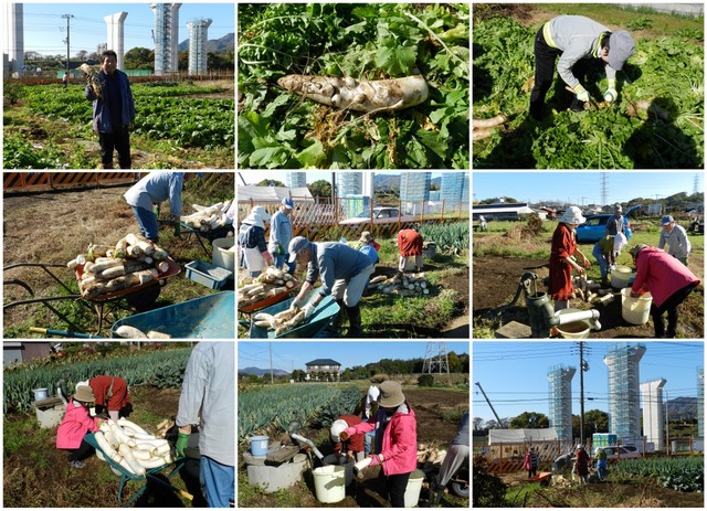 西富岡の畑の大根は、現在こんなに大きくなっています。本日はべったら漬けに適した「おおくら大根」を収穫しました。