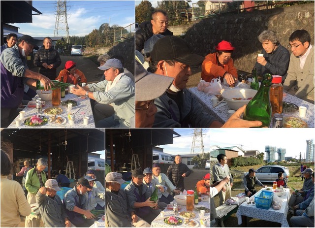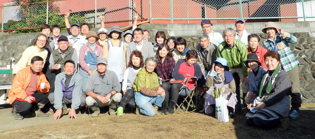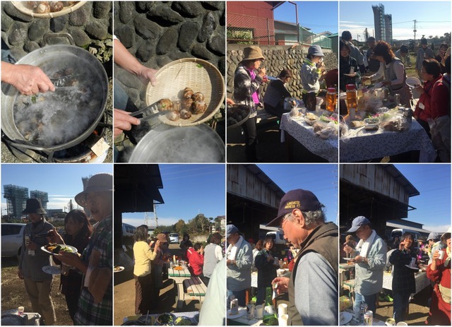 平成29年11月25日土曜日、農大オープンカレッジ講座最終回、晴天に恵まれ、雨岳自然の会では西富岡の畑で恒例の収穫祭(ポットラックパーティー)をしました。