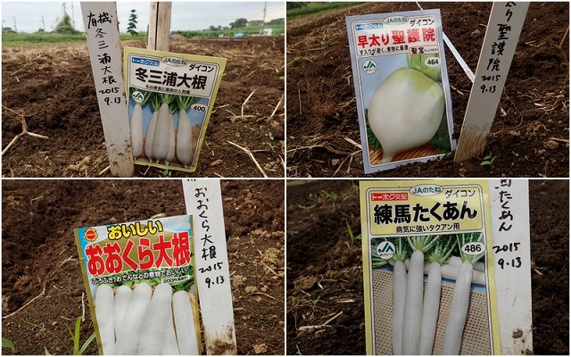 化成肥料:秋の郷大根、三浦大根(三浦大根の種が不足したので秋の郷大根を播種)