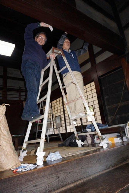19日は今年最後の週会となりましたので、津田様から大田道灌墓前の「贈位記念の碑」と御座松山口家の系譜と「萬霊等」のご説明を受けた後に、野崎理事長からご指導を頂いてきましたオクノヘヤの糠拭きとチャノマの乾拭き、神棚の清掃をおこないました。