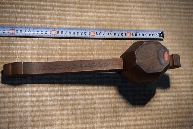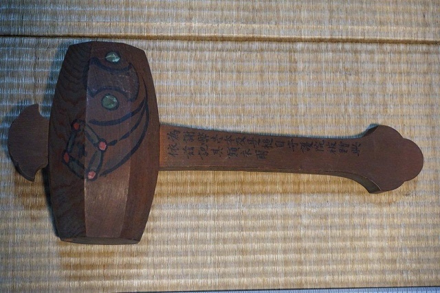 2)明治十七年 大山協会 会頭 山口作助源恒固 の銘が記されています木槌。「打ちでの小槌」になることを願っています。